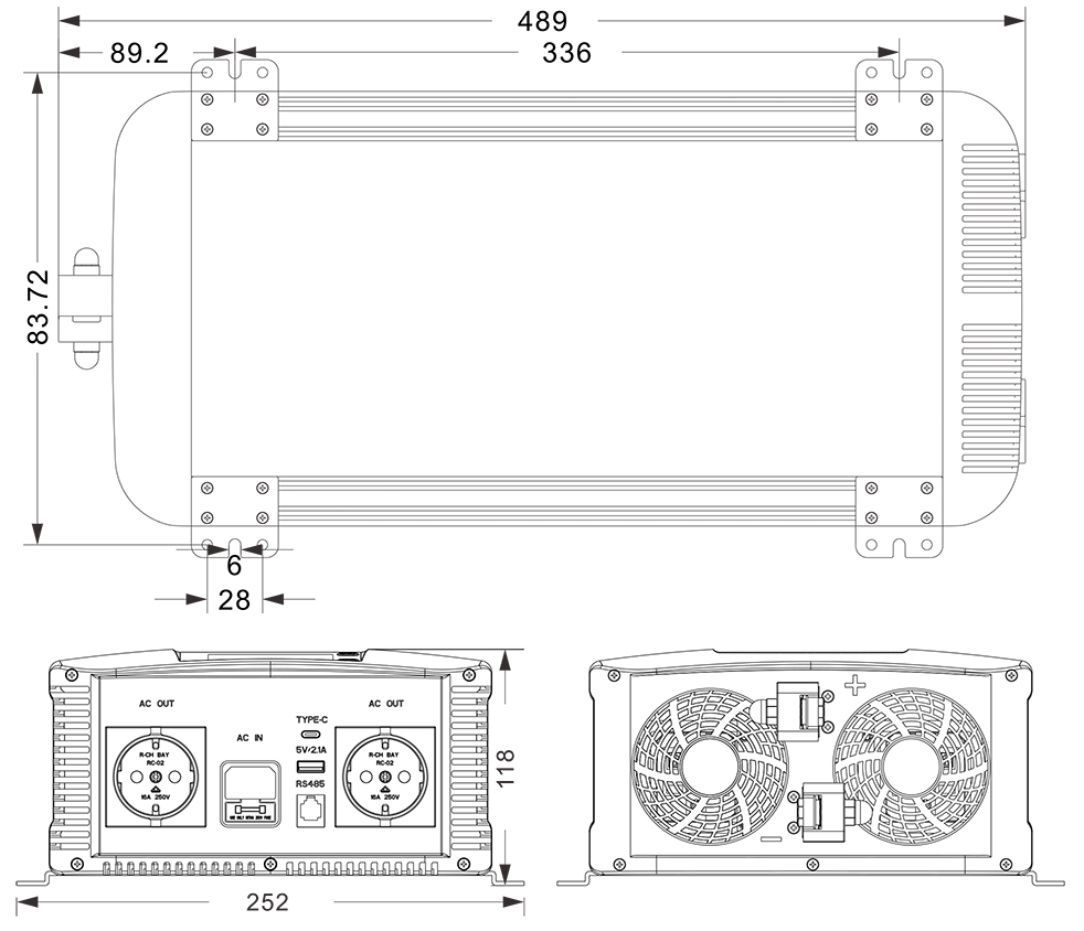 Други Димензии (Ш×В×Д) 489×252×118mmmm