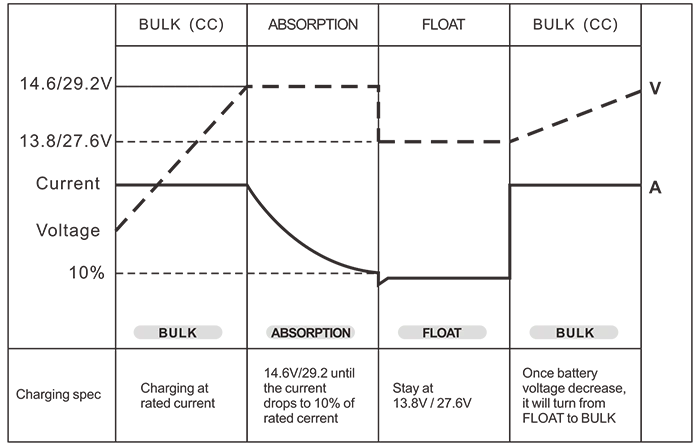 Контрола на батерии (3-степени полначи за батерии) Рефус /Апсорпција /Пловечки