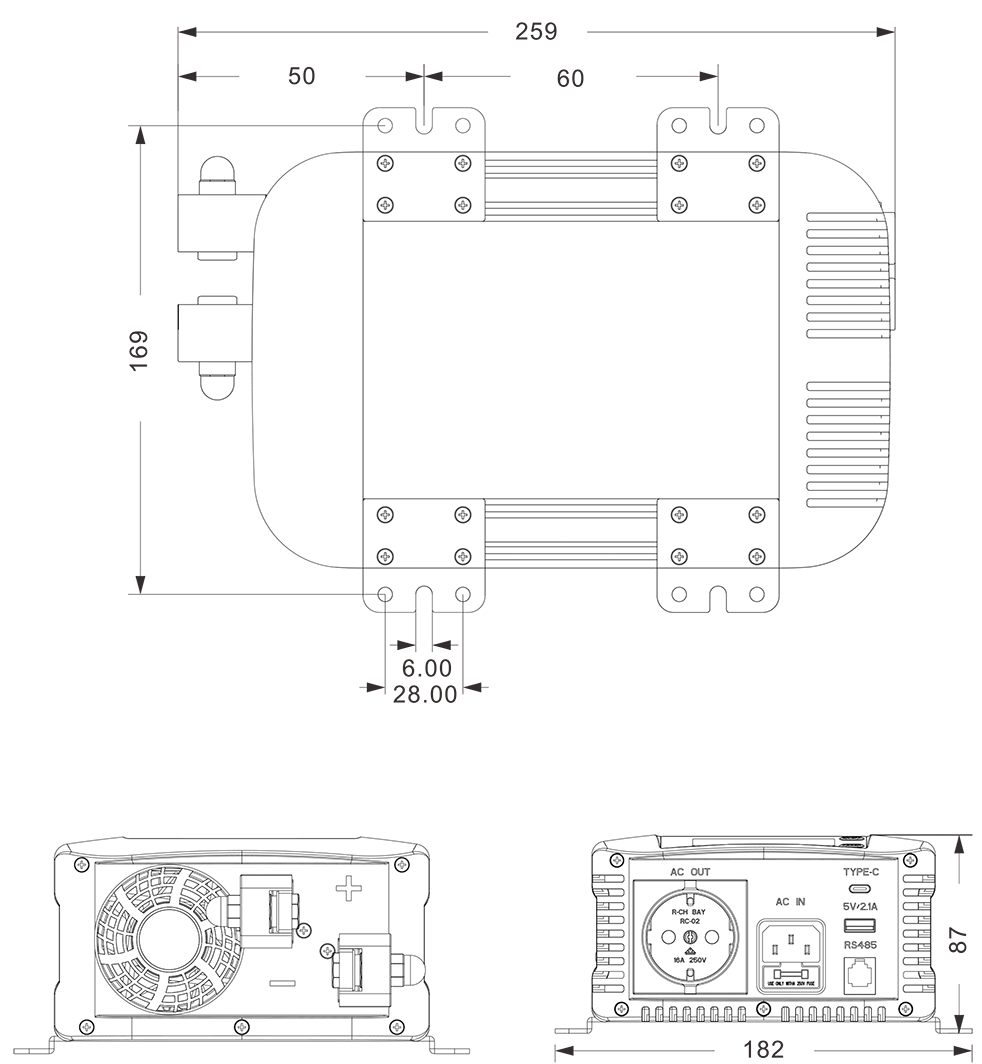 Други Димензии (Ш×В×Д) 259×182×87 mm